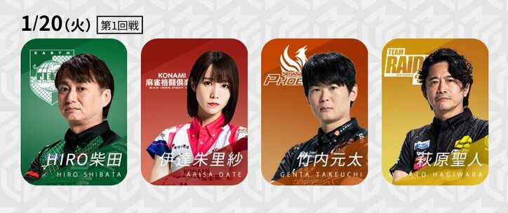 上位陣が狙うはガッチリとしたプラス固め リーグ3・4・5位の直接対決/麻雀・Mリーグ Mリーグ 2026/01/20 19:00 拡大する Mリーグ機構は「大和証券Mリーグ2025-26」、1月20日の第1試合に出場する4選手を発表した。注目はリーグ3・4・5位という上位の直接対決。どのチームもレギュラーシーズン突破に向けて、しっかりとポイントを確保したいところだ。 現在、リーグは上位5チームがプラス、下位5チームがマイナス。そのうち1~3位は大量プラス、8~10位は大量マイナスと明暗がくっきり出始めている。ここから戦いが白熱するのはボーダーライン付近の争い。3~5位の3チームは、以下のボーダーラインから離れて、争いに巻き込まれないポジションを取れるかが重要だ。 続きを読む