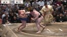 立ち合い鋭く当たった藤ノ川。だが193センチの長身・獅司が低い姿勢で藤ノ川を跳ね返した。藤ノ川は土俵際で粘りを見せ、回り込んで反撃に出ようとしたが、最後は獅司が強烈な突きで吹き飛ばした。敗れた藤ノ川は勢いよく土俵下へと転落、館内騒然となった。押し倒しで勝った獅司は8勝目を挙げ今場所勝ち越しを決めた。敗れた藤ノ川は3敗目を喫した。