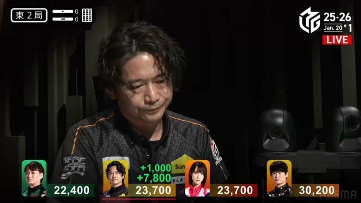 狙いバッチリ、覚悟の赤切り 躍動の萩原聖人が打点以上にかっこいいアガリ「覚醒!」「すごい」とファンが絶賛の好プレー/麻雀・Mリーグ Mリーグ 2026/01/21 11:00 拡大する 読みは冴え、覚悟は結果につながった。「大和証券Mリーグ2025-26」、1月20日の第1試合でTEAM雷電・萩原聖人(連盟)が、わずか200点差の大接戦を制してトップを獲得した。序盤、東2局では先の展開を読んだ手組みをし、勝負どころで危険牌を堂々と切る覚悟を見せたことでアガリにたどり着くと、ファンからも歓声があがった。 Mリーグ初年度からプレーする萩原。過去、一度もレギュラーシーズンをプラスで終えたことがないが、今シーズンは8年目にしてついにその鬱憤を晴らすような活躍が続いている。この日のトップで、自己最多を更新するシーズン8勝目。ポイントも+138.6とチームに貢献している。 続きを読む
