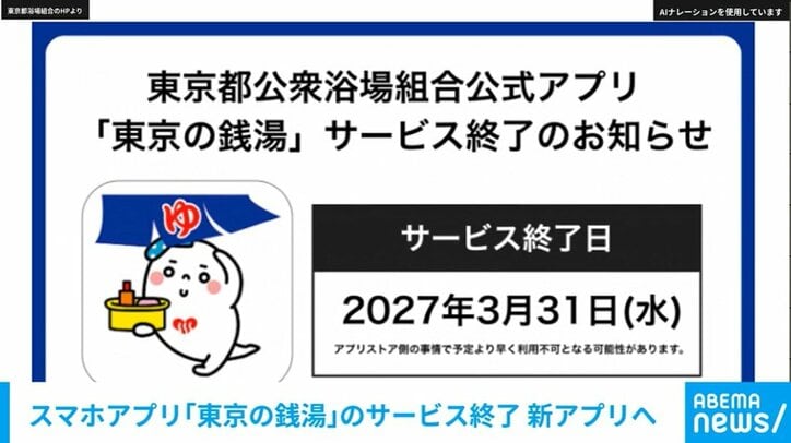 こうした事情を踏まえ、東京都浴場組合として、公式アプリのサービスを終了することを決定いたしました。