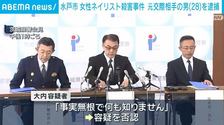 会社員の大内拓実容疑者(28)は先月31日、水戸市のアパートの一室で、ネイリストの小松本遥さん(31)の頭を鈍器のようなもので殴り、刃物で刺すなどして殺害した疑いがもたれています。