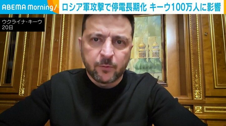 ロシア軍攻撃で停電長期化 キーウ100万人に影響 速報 2026/01/22 08:32 拡大する ウクライナのゼレンスキー大統領はロシア軍によるインフラ攻撃の影響で首都キーウで100万人以上が停電の影響を受けていると明らかにしました。 ゼレンスキー大統領は20日のビデオ演説で、ロシア軍の攻撃によりキーウだけで100万人以上が停電の影響を受け、4000棟以上の共同住宅で暖房が断たれていると明らかにしました。 首都キーウでは今月、気温がマイナス20℃まで下がる日もあり、AP通信は「ここ数年で最も厳しい冬を迎えている」と伝えています。 続きを読む