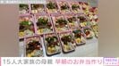 6男7女15人大家族「うるしやま家」母親・佳月さん(48)、早朝5時からお弁当作り キッチンでの調理風景を公開 ABEMAエンタメ 2026/01/23 10:18 【映像】うるしやま家、15人分のお弁当&キッチンで調理風景 この記事の写真をみる(3枚) 6男7女・15人の大家族「うるしやま家」が21日、YouTubeチャンネルを更新。母親の佳月さん(48)が朝5時から弁当を作っている様子を公開した。【映像】うるしやま家、15人分のお弁当&キッチンで調理風景 家族15人分の弁当や30分で作ったというワンプレートごはんなど、大家族ならではの料理をSNSで紹介している佳月さん。 「毎日こんな豪華な料理、尊敬します」「佳月ママのお料理食べたい!」などの声が寄せられ、話題になっている。 佳月さん、朝5時から弁当を作っている様子を公開 1 2 【画像】うるしやま家、15人分のお弁当 【映像】大家族「うるしやま家」、旅行後の大量の洗濯物タワー公開 大家族「うるしやま家」母親・佳月さん、年内ラストのお弁当公開 この記事の写真をみる(3枚) Twitter