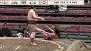 序ノ口筆頭・山野邊(出羽海)と序二段九十八枚目・達ノ海(伊勢ノ海)の一番。15歳の山野邊は幕内優勝10回を数えた第31代横綱・常ノ花の玄孫(やしゃご)で、身長168センチ、体重73.8キロとまだ小柄ながらこれからの活躍に期待が集まる若手力士だ。対する達ノ海は21歳、身長193.5センチ、体重158.7キロという巨体の持ち主。体重差倍以上も開いた体格差のある対決となった。