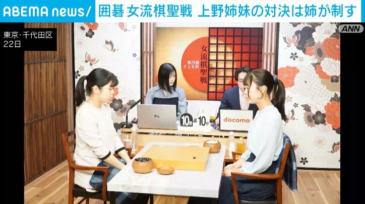 囲碁 女流棋聖戦 上野姉妹の対決は姉が制す 速報 2026/01/23 11:19 拡大する 囲碁の女流タイトル・女流棋聖戦の第2局で、挑戦者の上野愛咲美女流名人(24)が妹の上野梨紗女流棋聖(19)に連勝し、タイトルを奪取しました。およそ40年ぶりとなった姉妹対決のタイトル戦は姉が制しました。 女流棋聖戦三番勝負の第2局は、東京・千代田区で打たれました。上野梨紗女流棋聖(19)に挑戦するのは、姉の上野愛咲美女流名人(24)です。 対局は午後0時43分に313手までで、上野愛咲美女流名人(24)が勝利し、4年ぶりに女流棋聖に返り咲きました。これで女流立葵杯とあわせて女流三冠達成です。 続きを読む