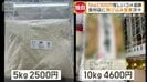 国産米を扱う5店舗を調査すると、最も高かったコメでも10キロ6000円。最も安かったのは10キロ4590円で、5キロあたりおよそ2300円と破格です。