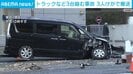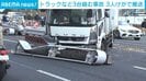 東京・港区のJR高輪ゲートウェイ駅近くで、トラックと乗用車2台が絡む事故がありました。3人がけがをしています。
