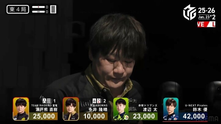 ラス牌引いて天空落とし!滞空時間長めな最強雀士のツモアクションがかっこいい「天才やろ」「素晴らしい」/麻雀・Mリーグ Mリーグ 2026/01/25 10:00 拡大する 空から舞い降りしアガリ牌。「大和証券Mリーグ2025-26」、1月23日の第2試合で渋谷ABEMAS・多井隆晴(RMU)が右手を高々とあげてから、振り下ろすようにツモる「天空落とし」を披露し、視聴者から「天才やろ」「素晴らしい」と絶賛された。 雀士は試合中のほとんど、手だけが放送に映っている。それだけに牌を扱う手さばきにも個性が見え、その動きだけ見てコアなファンであれば選手が判別できるほどだ。特にアガリ牌を持ってきた時には、さらに選手の思いが乗る。TEAM雷電・瀬戸熊直樹(連盟)が、クルッと牌を回しながら卓に叩きつける「トルネードツモ」も有名なところだ。 続きを読む