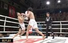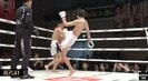 ゴングが鳴ると、サウスポー構えの中澤が左の蹴りで距離を測り、先に仕掛ける。しかし小池は臆することなく前進し、開始わずか30秒でワンツーから右ストレートを打ち抜いて最初のダウンを奪った。