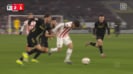 鈴木はDFラフ・ファン・デン・ベルフとMFトム・クラウスの2枚に挟まれる形となったが、強引に仕掛けることを選択。ファン・デン・ベルフの股にボールを通すと、自らの身体は両者の間をすり抜けて縦に突破した。