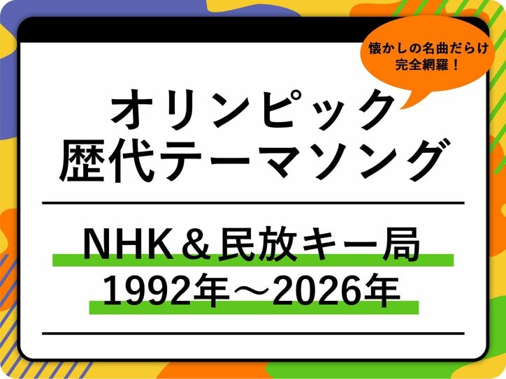 ここからは、放送局ごとに歴代テーマソングを振り返ります。1998年長野オリンピックから最新の2026年ミラノオリンピックまで、時代の流れと共に移り変わる名曲の数々をご覧ください。