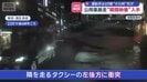 画面右から現れる赤信号を無視して交差点に突っ込んできた黒い公用車が、最初にぶつかったのは白いワゴン車。衝撃で90度向きを変え、隣を走るタクシーの左後方に衝突。弾き飛ばされた対向車線でも、タクシーは複数台にぶつかったといいます。