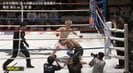 ラウンド後半、残り1分。勢いそのままの大平はアッパー連打で松谷をロープ際まで追い込み、大胆な行動に出る。両手を広げて「かかってこいよ!」とジェスチャーを見せると、その直後、右フックを叩き込み、最初のダウンを奪取した。