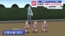 27日昼すぎ、植え込みの隙間から侵入したとみられる男。園児たちがいる庭に姿を現すと、その場にあった竹馬を振り回し始めたのです。