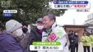 集まった支援者と握手を交わす共産党、川添健真氏(43)。今回で3度目の挑戦になります。