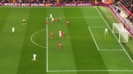 ズビルは中に行くと見せかけ、ヒールキックで縦に走ったヤファルグリイェフへパスを供給。これには遠藤も一度は逆を突かれて振られてしまった。しかし、ここからの修正力が凄まじかった。素早く反転して加速すると、フリーになりかけたヤファルグリイェフに追いついて対応。最後はゴール前へのクロスを右足でブロックし、決定機を作らせなかった。