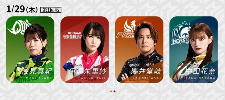 「俺たちのタカキ」待望の復帰戦!セガサミーフェニックス・浅井堂岐、脳血管疾患からついにカムバック/麻雀・Mリーグ Mリーグ 2026/01/29 19:00 拡大する Mリーグ機構は「大和証券Mリーグ2025-26」、1月29日の第1試合に出場する4選手を発表した。注目はなんといってもセガサミーフェニックス・浅井堂岐(協会)。脳血管疾患により一時入院し、生命の危機とも言われた中で、不幸中の幸いにも早期復帰を果たした。退院からリアル麻雀の数もそれほどこなせていないだろう中、どこまで戦えるか。 浅井は昨年12月の試合中に体調不良を感じると、試合後そのまま病院に直行し緊急入院。後に家族がXで脳血管疾患だったと明かすと、意識不明の状態にも陥ったが、重度な後遺症などなく退院を迎えた。ファンからは「俺たちのタカキ」と親しまれる存在だけに、入場シーンではコメントの嵐となりそうだ。 続きを読む