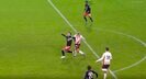 バイエルンのDF伊藤洋輝が持ち前の身体の強さをみせた。ボックス内で相手のエースが大きくバランスを崩してしまうほどの強靭なフィジカルでピンチの芽を摘んでいる。