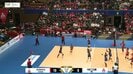 赤いジャージを着た指揮官は、相手のスパイクが打ち込まれた瞬間、タッチラインギリギリに中腰の姿勢で立ち、ボールがラインから外れたことを確認すると、即座に右腕を挙げてガッツポーズ。そのままベンチ方向まで走って喜びを表現した。