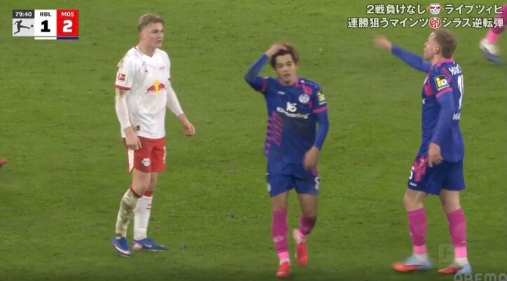 「無視してるw」佐野海舟にブチギレ! 驚異の“ボール奪取”→相手FWがイライラしてぶん投げる「強いな」「頼もしすぎる」 ブンデスリーガ 2026/02/01 07:00 拡大する 【ブンデスリーガ】RBライプツィヒ 1-2 マインツ(日本時間1月31日/レッドブル・アレーナ)マインツに所属する日本代表MFの佐野海舟が、球際で流石の強さを発揮した。うまく体を入れてボールを巻き取ったところで、相手に引き倒されてファウルを誘発。佐野の巧みなディフェンスに相手選手が苛立つ一幕があった。 マインツは日本時間1月31日、ブンデスリーガ第20節でRBライプツィヒと対戦。佐野はアンカーとしてスタメン出場すると、素早いプレッシングとハードなディフェンスで躍動する。 続きを読む