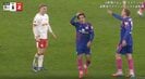 ファウルの判定に納得がいかないハーダーは「先に引っ張られてたぞ」と自分のユニフォームの裾を伸ばしてアピール。苛立ちを隠しきれなかったが、判定が変わることなくマインツボールで試合は再開となった。