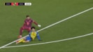 しかし、足裏を見せていた後藤の右足こそかすった程度だったが、残っていた左足が相手GKの右足に直撃。デラヴァレーが足を抑えて倒れ込む危険なタックルとなると、主審は20歳の日本代表FWにイエローカードを提示した。