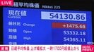 日経平均株価は、取引開始直後から値を上げ、上げ幅は一時、1700円を超えました。先月14日につけた取引時間中の最高値5万4487円までおよそ100円に迫る場面もありました。