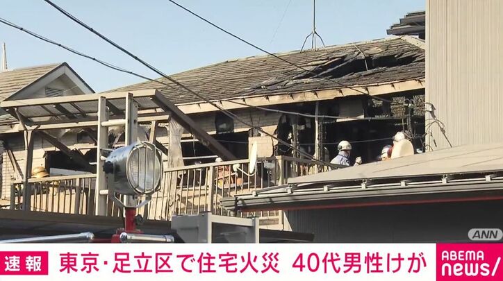 東京・足立区で住宅火災 40代男性けが 速報 2026/02/04 14:44 【映像】火事が起きた住宅(現場の様子) この記事の写真をみる(2枚) 東京・足立区の2階建て住宅で火事があり、現在も消火活動が続いています。【映像】火事が起きた住宅(現場の様子) 午後1時前、足立区平野で「一戸建ての2階が燃えている」と119番通報がありました。東京消防庁のポンプ車など18台が出動し、現在も消火活動が続いています。 警視庁などによりますと、この火事で火元とみられる住宅に住む40代の男性が頭に軽いやけどをしました。意識はあり、会話もできる状態だということです。 現場はつくばエクスプレス六町駅からおよそ1.4キロメートル離れた住宅街です。(ANNニュース) この記事の画像一覧 【画像】東京・足立区 火事が起きた住宅(現場の様子) 【映像】林家ペー、火事で全焼した自宅へ「貯金はほとんどない」 「火災は兵器によるもの」…災害時のデマに騙されない方法は? この記事の写真をみる(2枚) Twitter