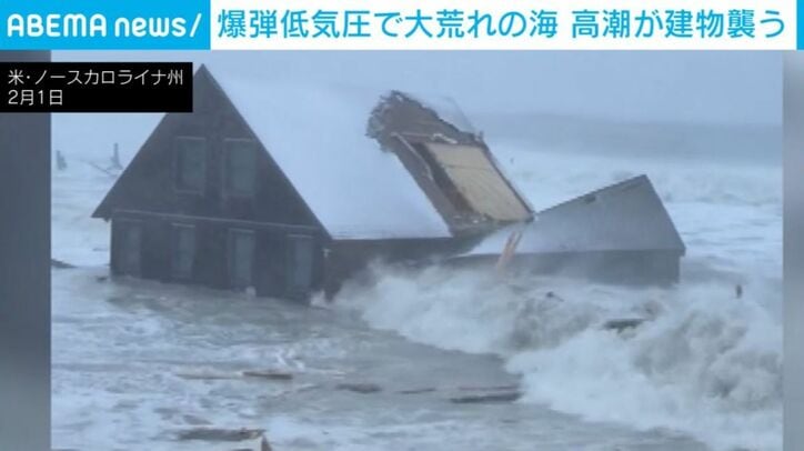 “爆弾低気圧”が直撃…高潮で住宅が崩れ落ちる瞬間 アメリカ東部 わたしとニュース 2026/02/05 19:00 拡大する アメリカ・ノースカロライナ州で2月1日、高潮が、容赦なく建物を襲う様子がカメラに捉えられた。 アメリカ東部を直撃した爆弾低気圧による高潮が、容赦なく建物を襲う。荒れ狂う波の間を、がれきが漂っている。 続きを読む