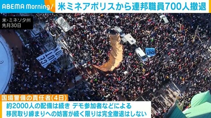 ミネソタ州に派遣しているICE=移民・税関捜査局などの連邦職員700人を即時に撤退させると国境警備の責任者が4日、発表しました。