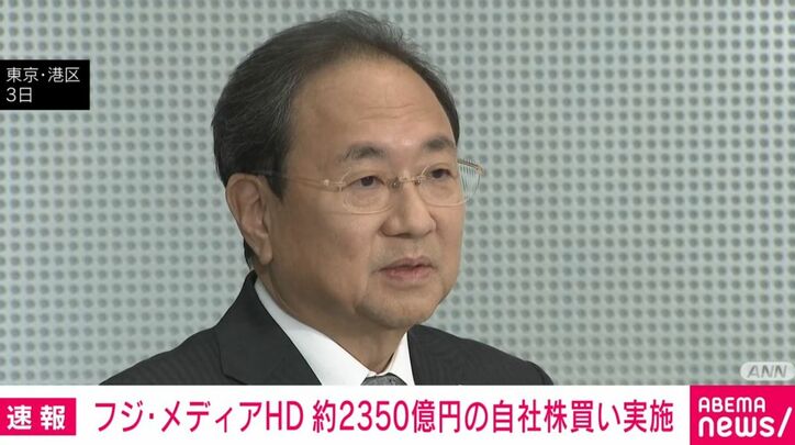 フジ・メディアHDは、およそ2350億円の自社株買いを実施したと発表しました。物言う株主の旧村上ファンド系のほか、アメリカの投資ファンドなどが買付けに応じました。