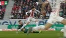 すると試合終盤の90分に見せ場を迎える。自陣のボックス手前でパスを受けた鈴木は、そのままドリブルを開始。並走するMFサミュエル・ムバングラのタックルをうまく交わして、そこから一気に加速した。ハーフウェイラインまで運んだところで、DFマルコ・フリードルが後方からスライディングタックルを見舞うと、これが鈴木にヒットしてその場で転倒。主審は試合を止めてフリードルにイエローカードを提示した。