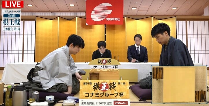 藤井聡太棋王VS増田康宏八段 「宝石のように美しい駒堪能して」駒所有の女流棋士が呼びかけ/将棋・棋王戦第1局 将棋藤井聡太 2026/02/08 12:51 拡大する 将棋の藤井聡太棋王(竜王、名人、王位、棋聖、王将、23)と増田康宏八段(28)が激突する第51期棋王戦コナミグループ杯五番勝負が2月8日、愛媛県松山市の「道後温泉ふなや」で行われている。注目の開幕局では、地元出身の山根ことみ女流三段(27)が所有する駒が使用されている。「宝石のように美しい駒なので、対局者も堪能してくれていたら嬉しい」と呼びかけていた。 4連覇を目指す藤井棋王と、2期連続挑戦者となった増田八段が挑む注目のシリーズ開幕局。本局は、国内最古の温泉として知られる「道後温泉」を舞台に争われている。 続きを読む