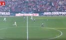 アウクスブルクのDF陣のクリアをFWミヒャエル・グレゴリッチュがハーフウェイライン手前で回収すると、前に突っ込んできたマインツDFシュテファン・ベルの逆を突く形で前方のスペースに大きくボールを持ち出した。