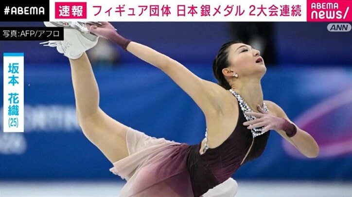 フィギュア団体 日本銀メダル 2大会連続 速報 2026/02/09 07:54 拡大する フィギュアスケート団体決勝で日本が2大会連続となる銀メダルに輝きました。 2位で決勝に進んだ日本。 日本時間きょう未明から行われたペア・スケートフリーでは三浦璃来選手、木原龍一選手による「りくりゅうペア」が登場しました。ダイナミックかつ優雅な演技で圧倒しつつ大きなミスもなく、世界歴代3位となる155.55の高得点で1位に。 チームとしては首位のアメリカとの差を2ポイント差に縮めました。 そして、続く女子シングル・フリーには今シーズン限りで引退を表明している坂本花織選手が登場。完成度の高いジャンプを次々と成功させスピード感あふれる演技を披露しました。得点は148.62という高得点で暫定トップ。 続きを読む