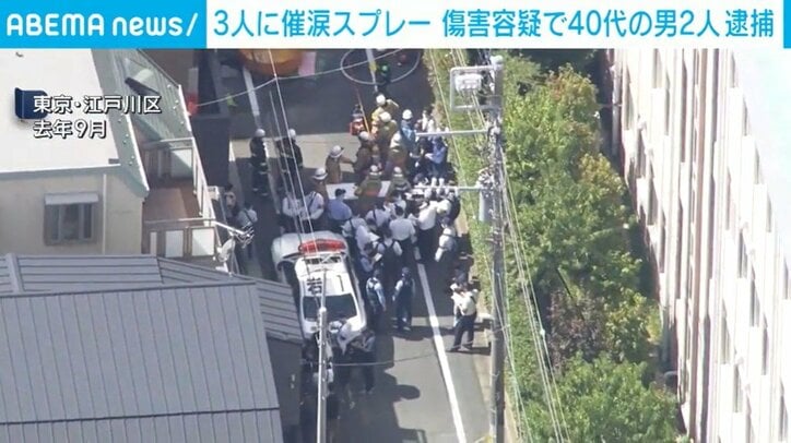 東京・江戸川区で男女に催涙スプレーをかけて3人にけがをさせたとして、40代の男2人が逮捕されました。