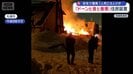 何かの爆発音が響き渡ります。その直後、まだ夜も明けきらない住宅街に激しい炎が立ち上り…なすすべなく見守る人が見えます。