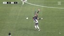 序盤から岡山がボールを握る展開が増えていた中で福岡は長いボールを使って前進を図る。その際にファンも心配する危険なプレーが見られた。
