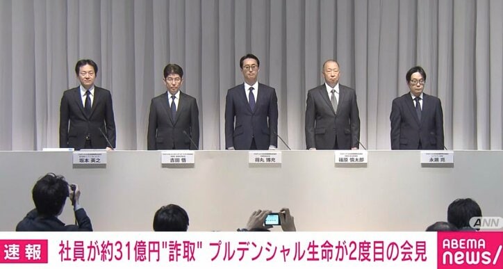 10日、外資系生命保険大手のプルデンシャル生命保険は、社員ら100人超が顧客から計31億円をだまし取っていた金銭不祥事を受け、都内で記者会見を行った。