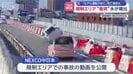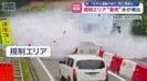 高速道路上で突如噴き出した大量の水。トラックが仮設の分離帯をなぎ倒すようにぶつかると、衝撃を緩和するために中に入っていた水が飛び散り、分離帯が粉々になってしまいました。