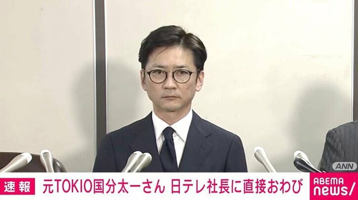国分さんは日本テレビの対応を巡り、「どの行動がコンプライアンス違反か答え合わせできない」などと話していましたが、日本テレビの福田社長と面会し、直接謝罪したことを12日明らかにしました。また、日本テレビを通じ関係者に対してお詫びの手紙を渡せたということです。