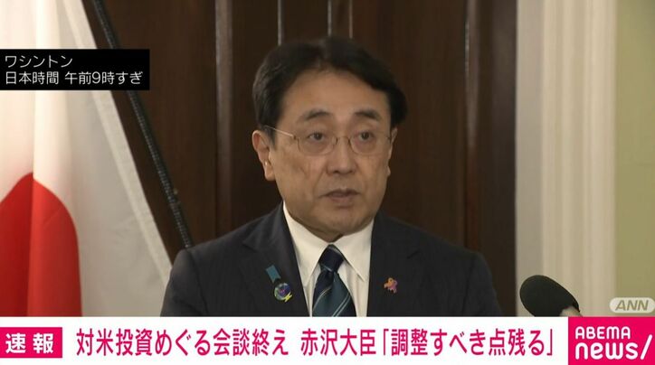 対米投資・第1号案件の協議のため訪米した赤沢経済産業大臣は、ラトニック商務長官との会談後、「調整すべき論点が残っている」と話し、合意が持ち越しとなったことを明らかにしました。