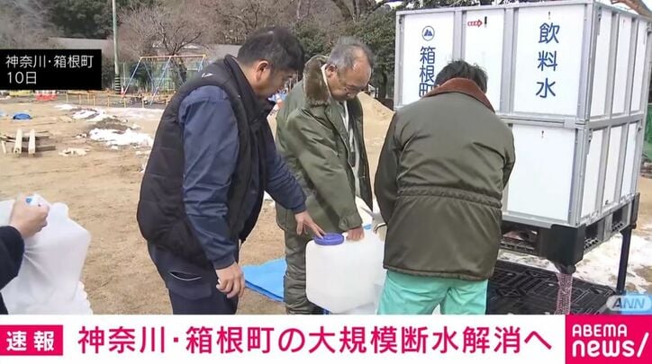 箱根町は、9日の寒波の影響で水道管が破裂するなどの被害が相次ぎ、水を貯める配水池の水位が下がったことを受け、土産店や旅館などが立ち並ぶ湯本地域で10日から断続的に断水しています。