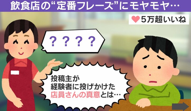 善意か?急かしか?飲食店の“定番フレーズ”の真意を問う投稿に「京都なら後者だろうね」「『お席を広くお使いくださいね』の姿勢でいつも対応しています」と反響 わたしとニュース 2026/02/14 12:30 拡大する 飲食店でよく耳にする接客フレーズの真意を問う投稿が、話題になっている。 投稿したのは、たまやかり さん(@NEOtama0000)。Xで「お済みのお皿お下げしてよろしいですか?」という飲食店の“定番フレーズ”の真意を、飲食店でアルバイトをする人に問いかけた。 続きを読む