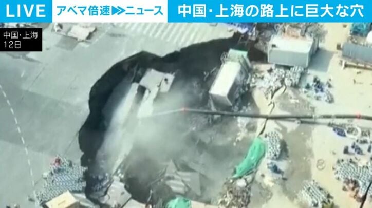中国・上海で道路上に突然、巨大な穴があき、周囲の人々が逃げ出すなど現場は騒然としました。