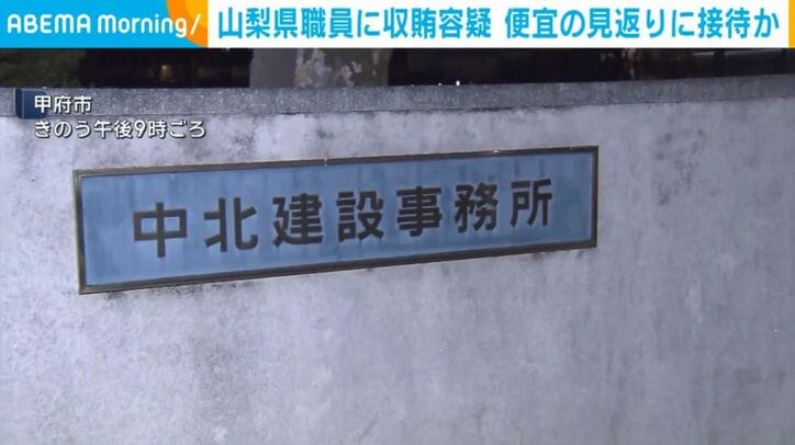 山梨県職員の男が業者に便宜を図った見返りに接待を受けた収賄の疑いで逮捕されました。