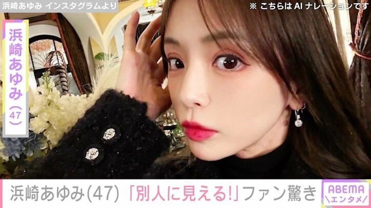 “ぴっちぴち”息子の服を着た姿が話題・浜崎あゆみ(47)、最新ショットに反響「別人に見える!」「とてもセクシー」 ABEMAエンタメ浜崎あゆみ 2026/02/17 10:53 拡大する 歌手の浜崎あゆみ(47)が、肩やデコルテがあらわになった姿を披露し、絶賛の声が寄せられている。 6歳と4歳、2人の男の子を育てている浜崎。InstagramではキッズサイズのTシャツを着たトレーニング動画も公開しており、「息子用の120(cm)です!素で自分のと思って着たらぴっちぴちでしたw」とコメントし、その姿が話題になっていた。 15日には肩やデコルテを大胆に見せている黒い服を着用し、ポーズをとる写真を披露。この投稿には「わぁぁ あゆちゃん美しすぎる」「とてもセクシー」「別人に見える!」などのコメントが寄せられている。(『ABEMA NEWS』より) 続きを読む