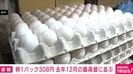 卵1パック308円 去年12月の最高値に並ぶ 速報 2026/02/17 18:10 【映像】店頭に卵が並ぶ様子 この記事の写真をみる(2枚) 卵1パックあたりの価格が過去最高値に並びました。【映像】店頭に卵が並ぶ様子 農林水産省の食品価格動向調査によりますと、2月9日から10日の卵の平均販売価格(サイズ混合・10個入り)は前の月と比べて2円高い308円でした。平年より2割以上高く、去年12月に記録した過去最高値に並びました。 全国各地で鳥インフルエンザの感染が相次いでいて、供給力が回復しなければ今後も価格が高止まりする可能性があります。食品価格動向調査は全国470の小売店で販売された肉や卵の平均価格を毎月1回公表しています。(ANNニュース) この記事の画像一覧 【映像】時価750万円で売られる超高額ポケモンカード 【画像】「なんで私?」イーロン・マスクに見つかり世界的にバズった佐保里さん 借金1000万円肩代わり “ホス狂い”の娘を持つミドリさん この記事の写真をみる(2枚) Twitter