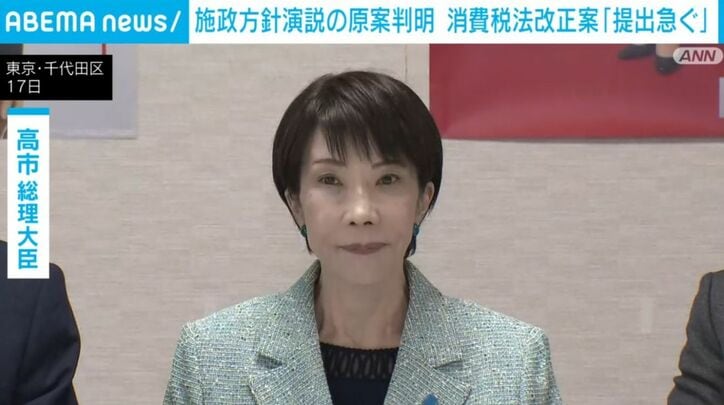 高市総理大臣が20日に特別国会で行う施政方針演説の原案が判明しました。飲食料品の消費税2年間ゼロに向け、関連法案の提出を急ぐ考えを表明します。