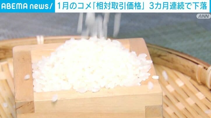 JAなどの集荷業者と卸売業者の間で取引されるコメの価格=「相対取引価格」が3カ月連続で値下がりしました。